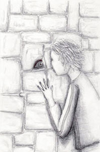 chapter 39: Eve talks to a large eye through the wall of their prison cell